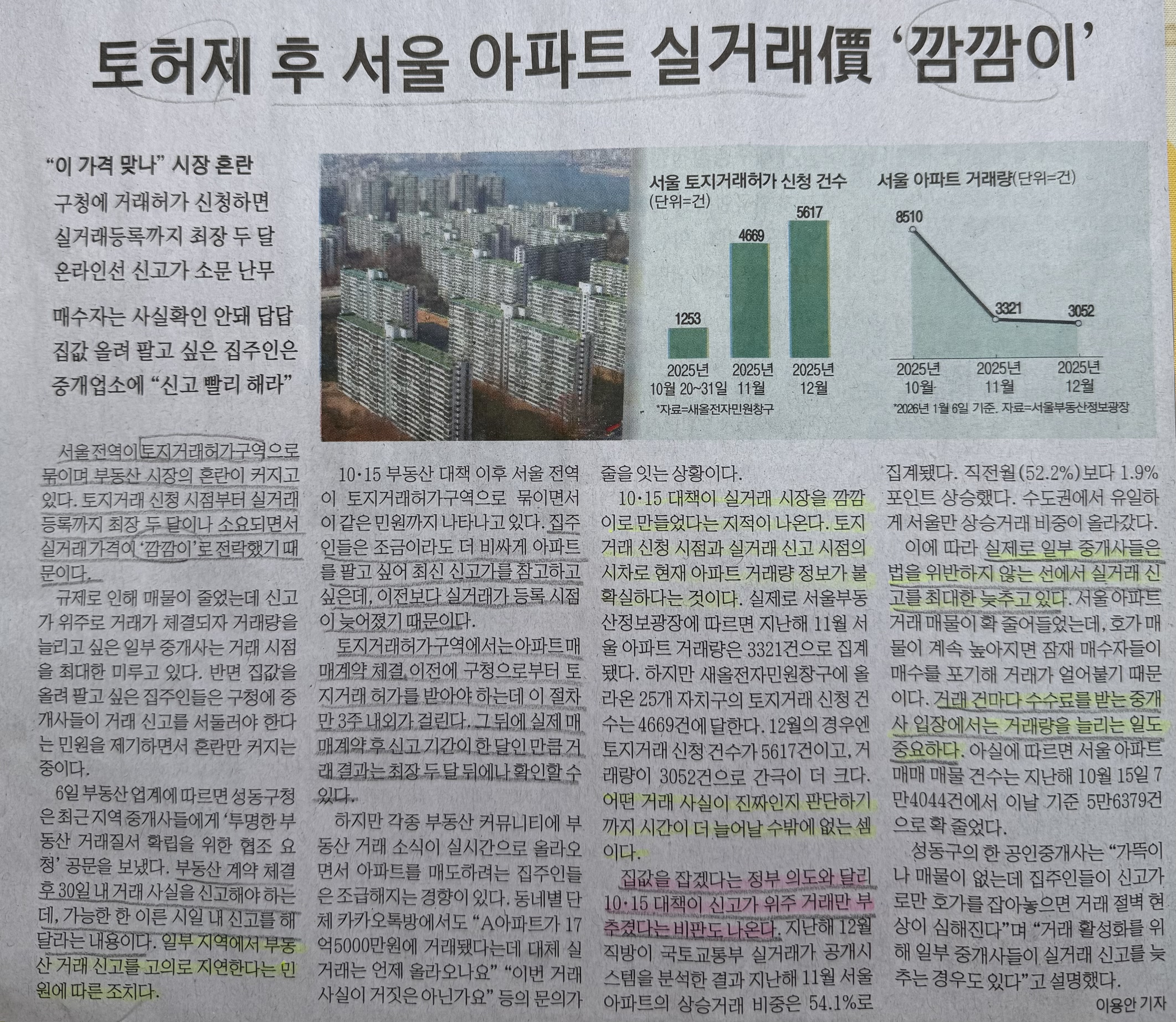 서울 전역이 토지거래허가구역으로 묶이며 부동산 시장의 혼란이 커지고 있습니다. 토지거래 신청 시점부터 실거래 등록까지 최장 두 달이나 소요되면서 실거래 가격이 '깜깜이'로 절략했기 때문입니다.
